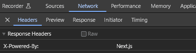 To see the x-powered-by header for yourself, first open the browser dev tools (by pressing the F12 key or right-clicking somewhere in the page and choosing Inspect), then open the Network Tab and then click on the row for the page, then click on Headers and look at the entries for the response headers where you should have an entry for x-powered-by, like in this screenshot: